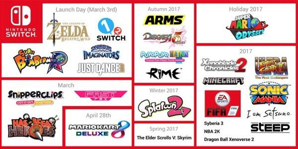 ローンチタイトルは10本、『ゼルダの伝説 ブレスオブザワイルド』『1 2 Switch』
