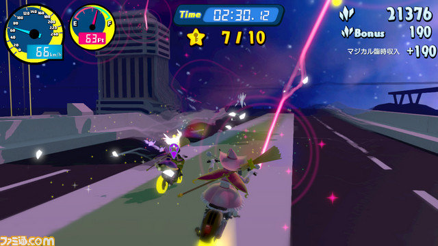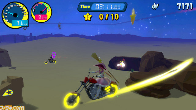 プレイヤーは、マジカルバイクにまたがり、星のかけらを集めるために奮闘する。