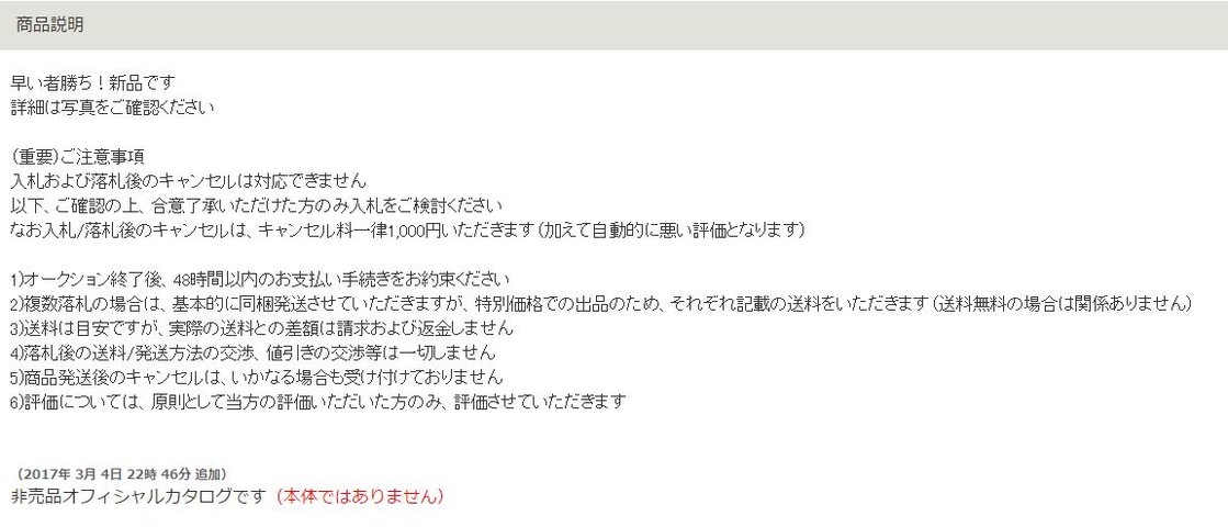 ヤフオクで落札するときはよく確認を。
