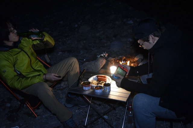 夜は大人は焚火の前で酒飲んで、子供はゲームとかそんな感じ