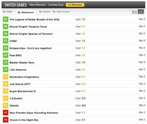 ゼルダ97点とは一転16点で早くも格差凄くね?