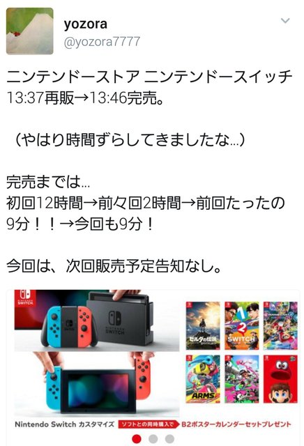 って言った後に任天堂のswitch増産が発表されたりしてるのな