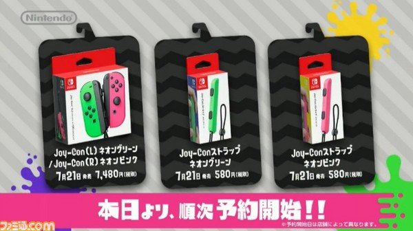 ネオングリーン&ネオンピンクのJoy-Con。7480円[税抜]。