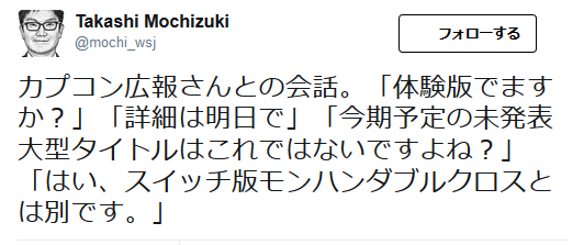 カプコン広報さんとの会話。「体験版でますか?」「詳細は明日で」
