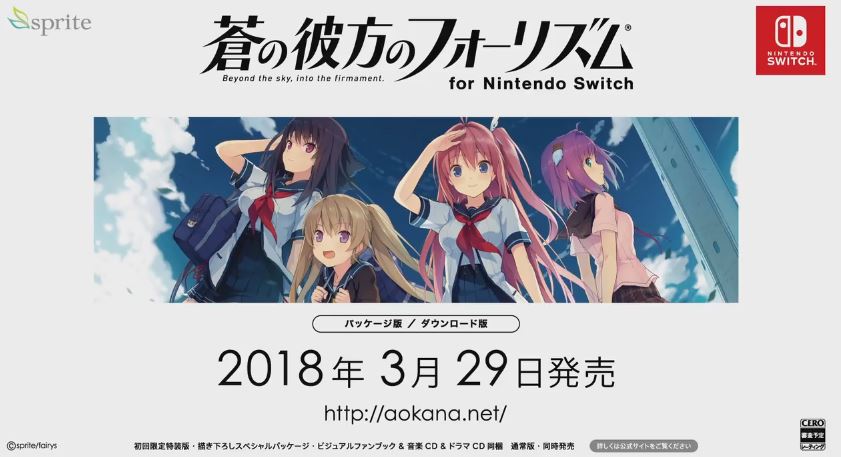 「蒼の彼方のフォーリズム for Nintendo Switch」 発売日が2018年3月29日に決定、紹介映像