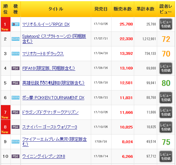 あとランキングがswitchまみれになってるところもアレ