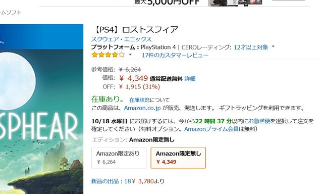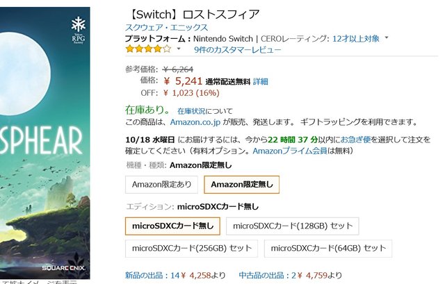 スイッチ版の尼価格5282円か