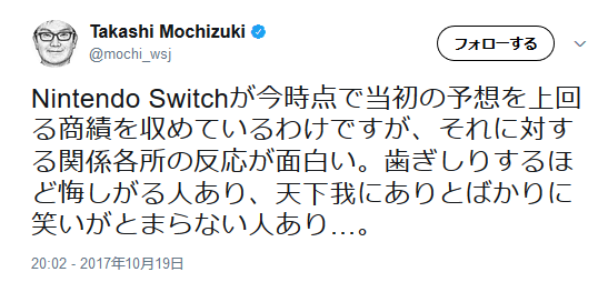 Nintendo Switchが今時点で当初の予想を上回る商績を