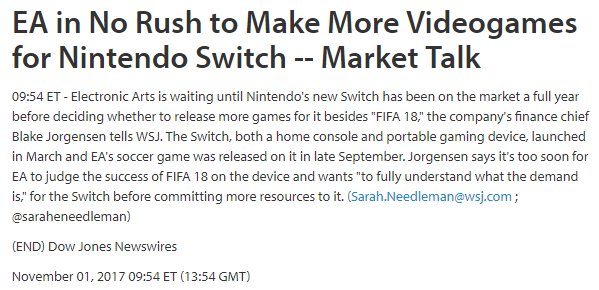 • EA「Switch向け開発は急がない。来年3月までは様子見」
