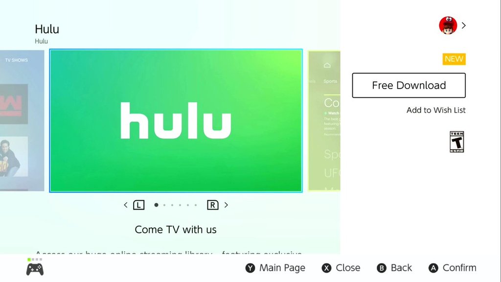 「Hulu」がニンテンドースイッチ向けに配信されている。