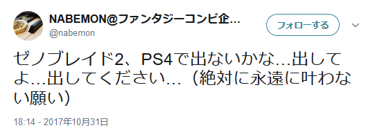 ゼノブレイド2、PS4で出ないかな…出してよ…出してください…