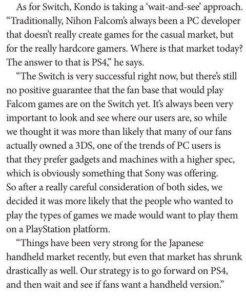 「スイッチは現在非常にうまくいっていますが、ファルコムのゲームを