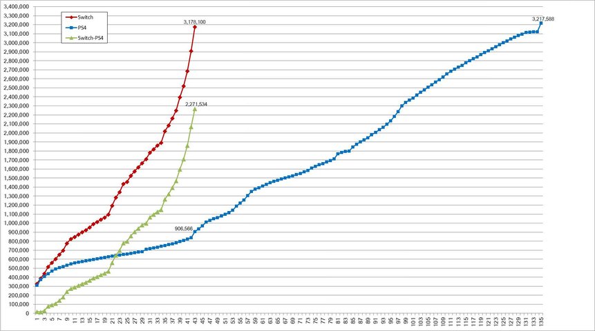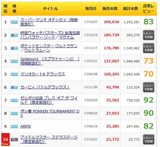 意外なのが、スイッチ販売数がマリオデ+スプラの