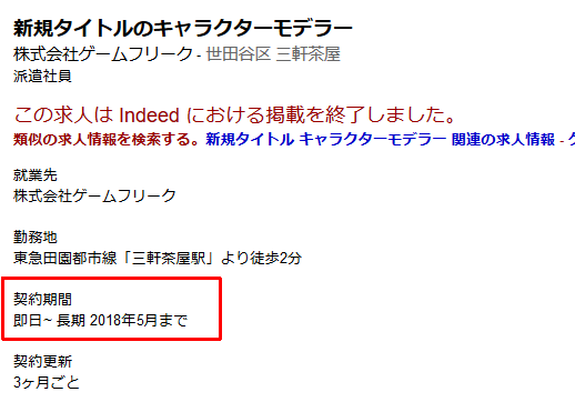 ゲームフリークの求人の契約期間も5月までだった