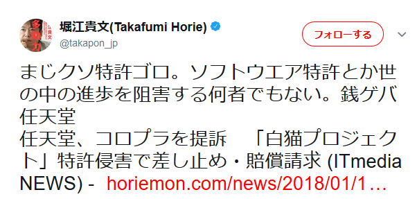 あと、特許ゴロはコロプラの方だったってレスもちらほらあるけど