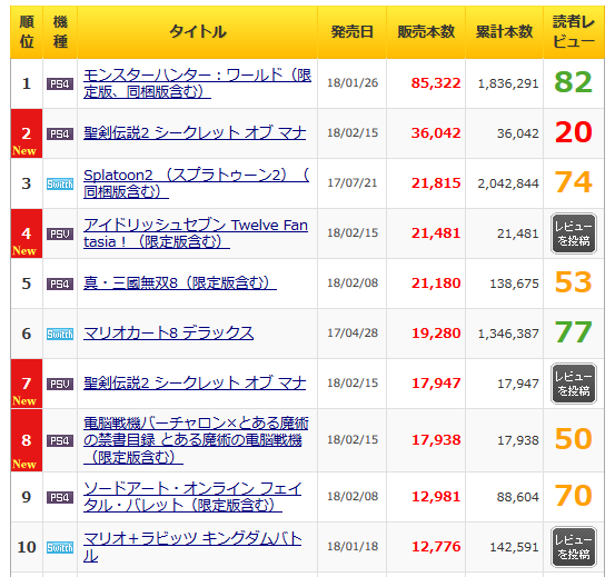 聖剣リメイクやバーチャロン以下かよ