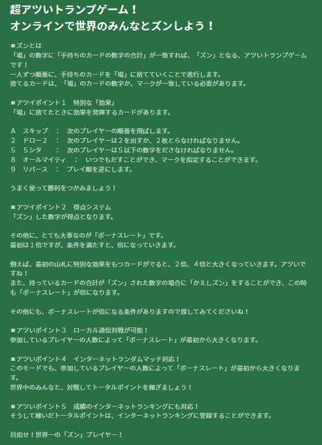 本作は、トランプルール「ずん」を元にしたカードゲーム。