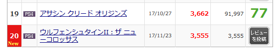 20 PS4 ウルフェンシュタインII:ザ ニューコロッサス 17/11/23 3,555