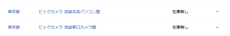 東京都 ビックカメラ 池袋本店パソコン館 在庫無し