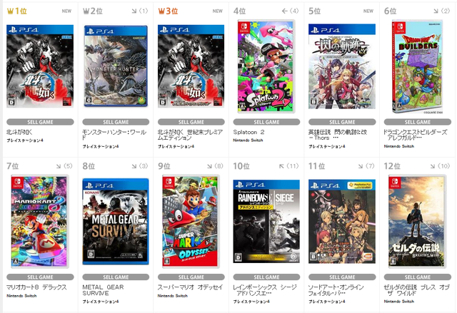 一番売れてるPS4版ですら17位