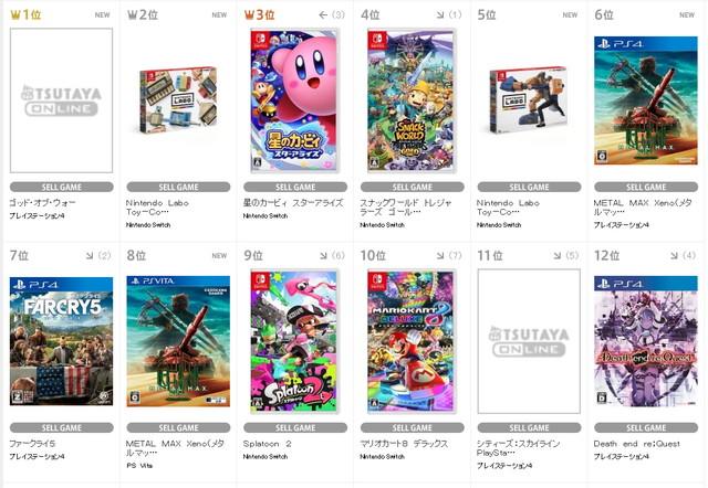任天堂系弱めのTSUTAYAでGOW一位だけどまだ油断はできない
