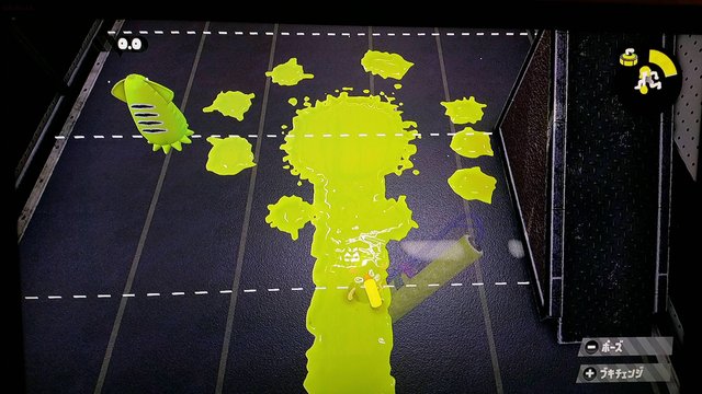 Rボタンちょっと押して投げると爆風と塗り範囲がかなり狭くなってる